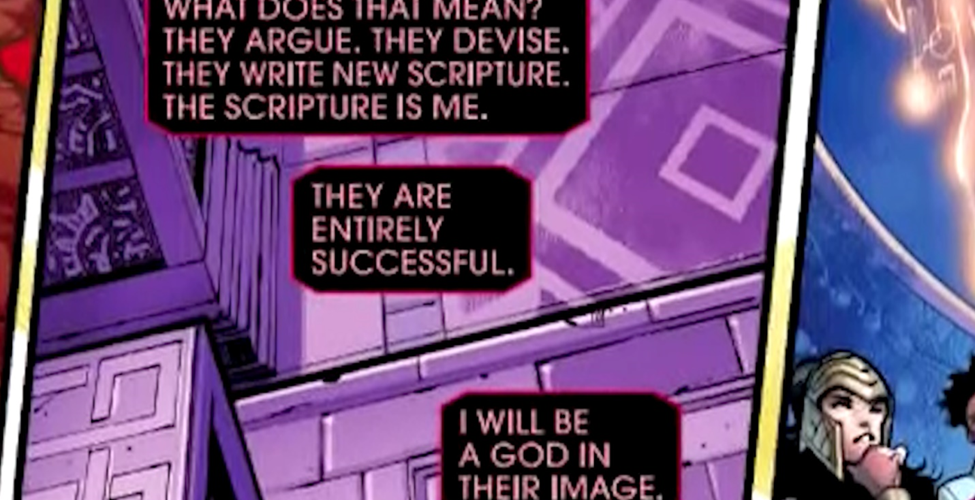 Until recently (watching your videos), I was not aware, as my exposure to hero media is more in animation/film than comics. I believe it’s very telling when men feel like they have to lie and cheat to force their unfavorable idea of Judeo-Christian belief in front of unsuspecting readers. They tread the line too closely by making it unclear (but obviously intentional) if Sise-neg/Genesis “was” God all along from the beginning of time, or if he was wrecking the universe of the “original God” Who is absent in the comic. Either way, it’s too pointed for comfort, and shows an unforgiving perspective on Biblical matters by more or less ripping off our faith in order to misrepresent it.